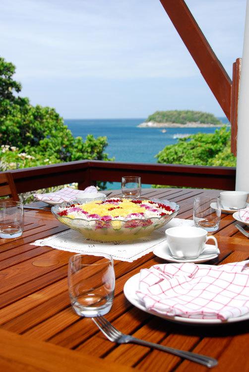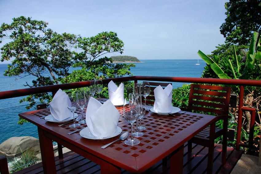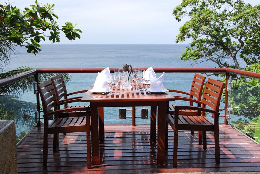 Chilling at  Kata Villa  boasts a delightful balcony – the focal point or the luxury Phuket residence – that rests high above the rocks with splashing waves below.