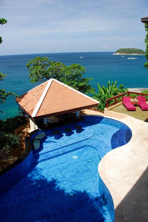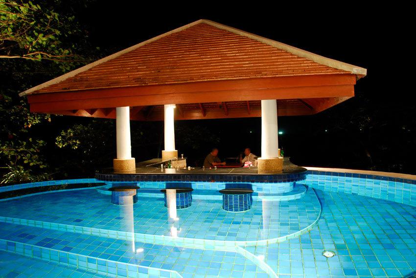 The swimming pool features a swim-up bar to enjoy cocktails with friends and family while lazily looking out over the Andaman Sea.