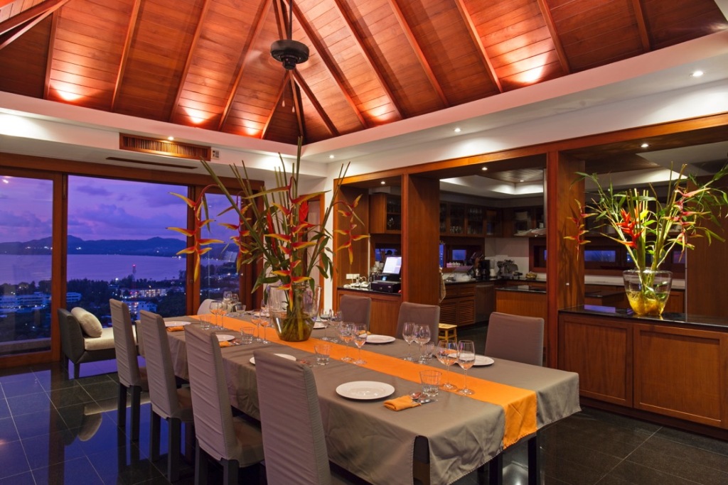 The 10 bedroom Villa stands high above the bay, facing north and west stunning sun sets out over the Andaman Sea.