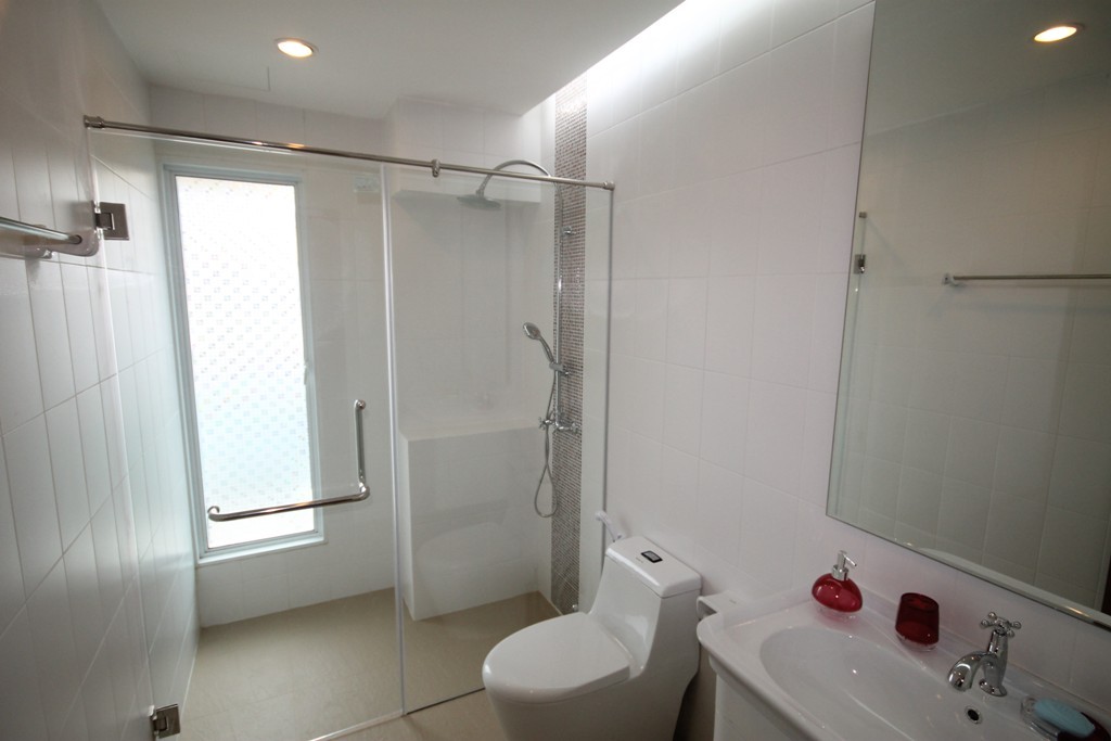 The guest bedroom is at the rear and has a well-appointed en-suite with walk-in shower, whilst the master is at the front, overlooking the central pool area, this has a larger en-suite with walk-in shower, but has the added benefit of a large balcony also.