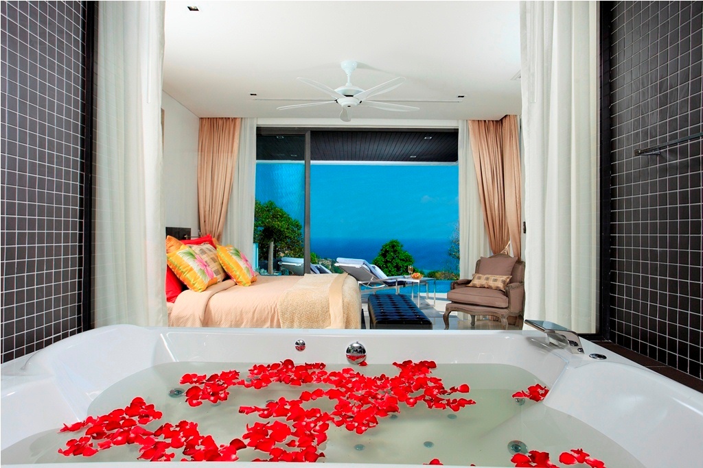 The majority of the villa’s 6 bedrooms and living spaces enjoy ceiling-high folding glass doors that open out onto private balconies; to take full advantage of the alluring sea views, welcoming sunrises, colourful sunsets and magical fireworks displays that light up the night over Phuket’s most exclusive skyline.