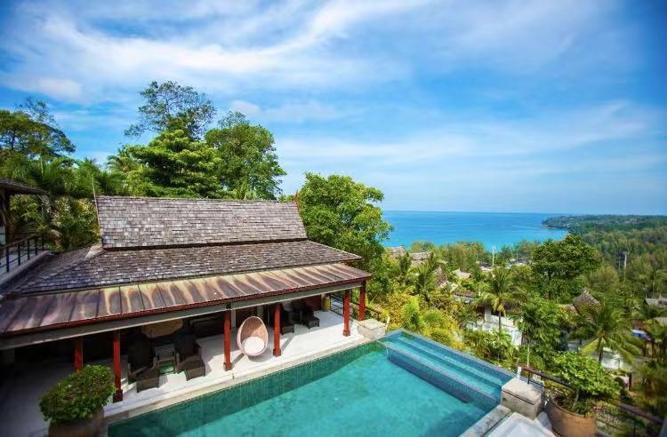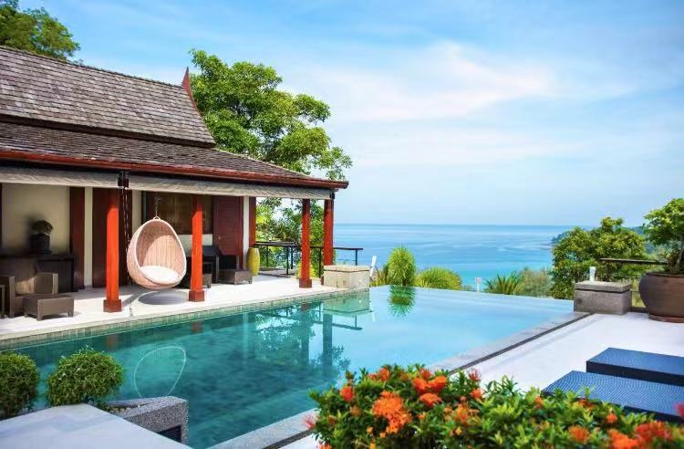- Pool : Infinity salt water pool with bubble pool at the end of the edge of the swimming pool, Outdoor Sala and sunbathing area Ocean Views of the Andaman Sea and Surin Beach
