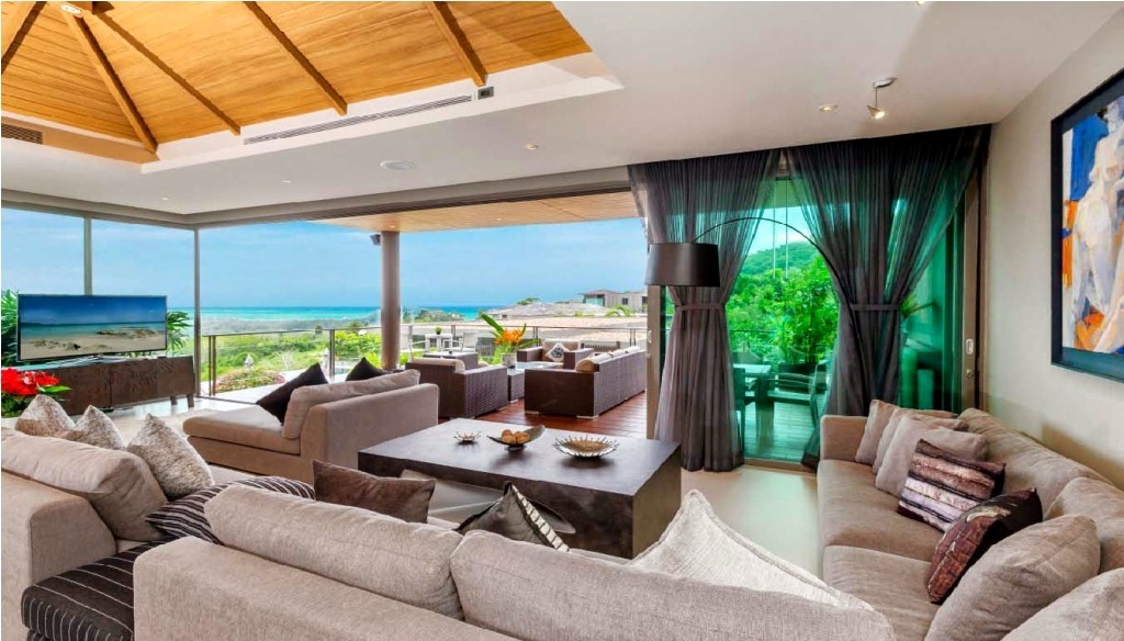 On entering the villa you are greeted with a panoramic view over the large infinity edge pool to the ocean. There is a large open plan living and dining area including kitchen facilities and full width windows opening onto the terraces. Further outdoor seating, dining tables, sun beds and umbrellas are provided.