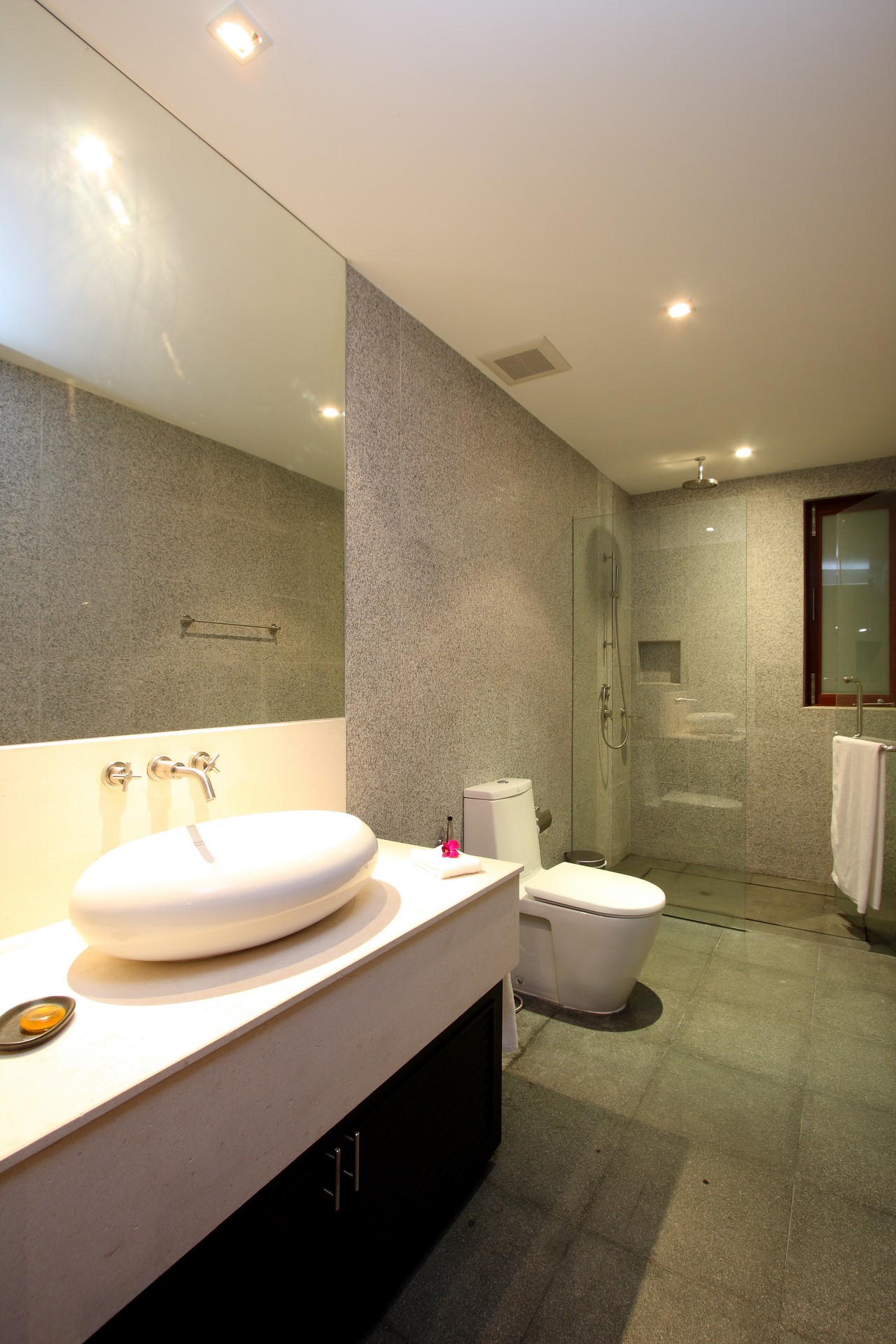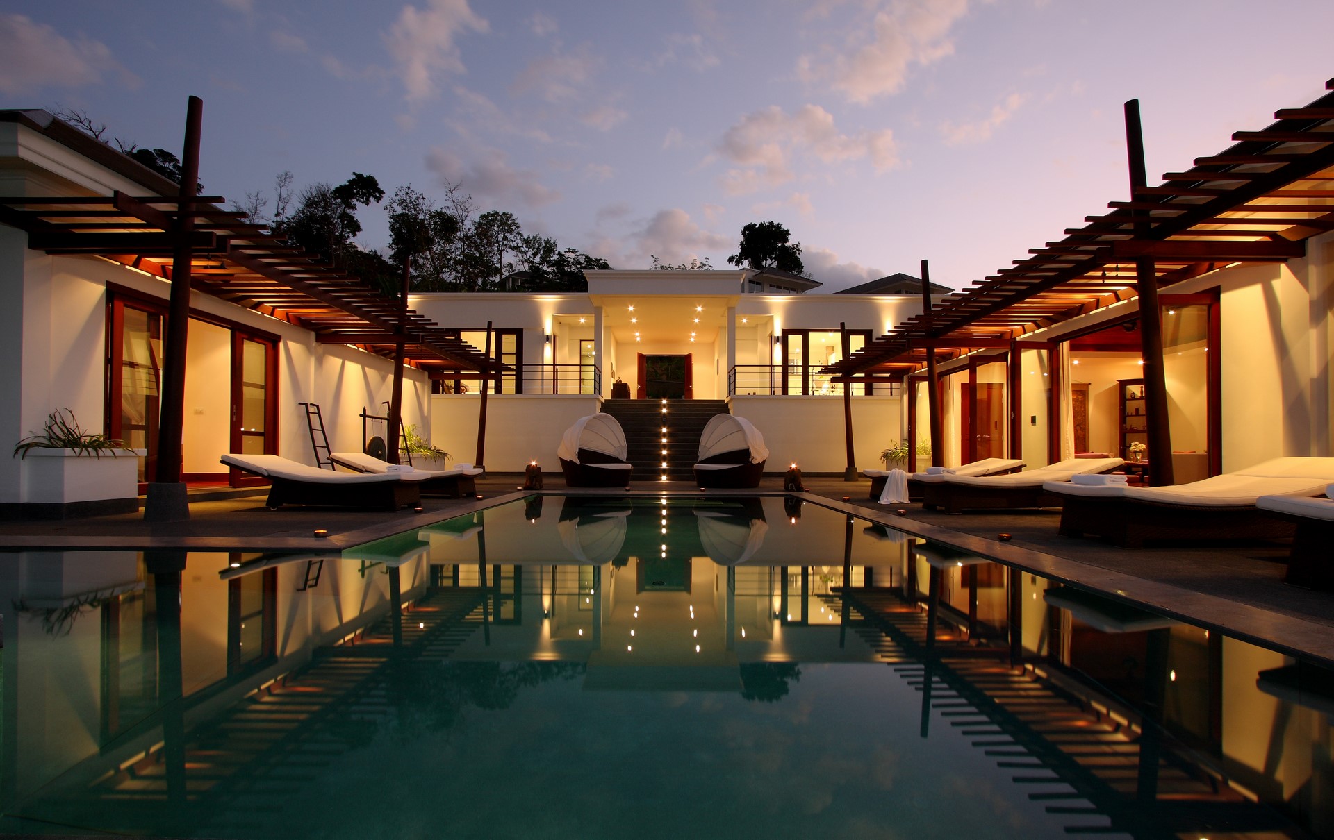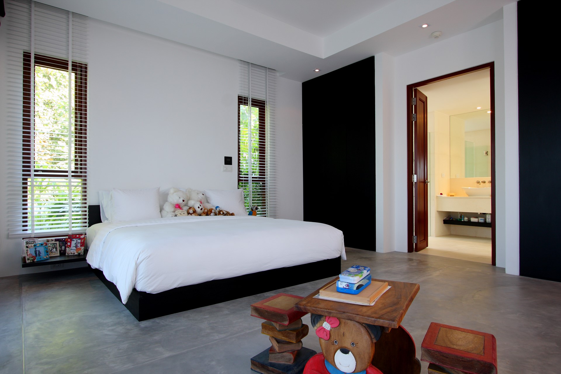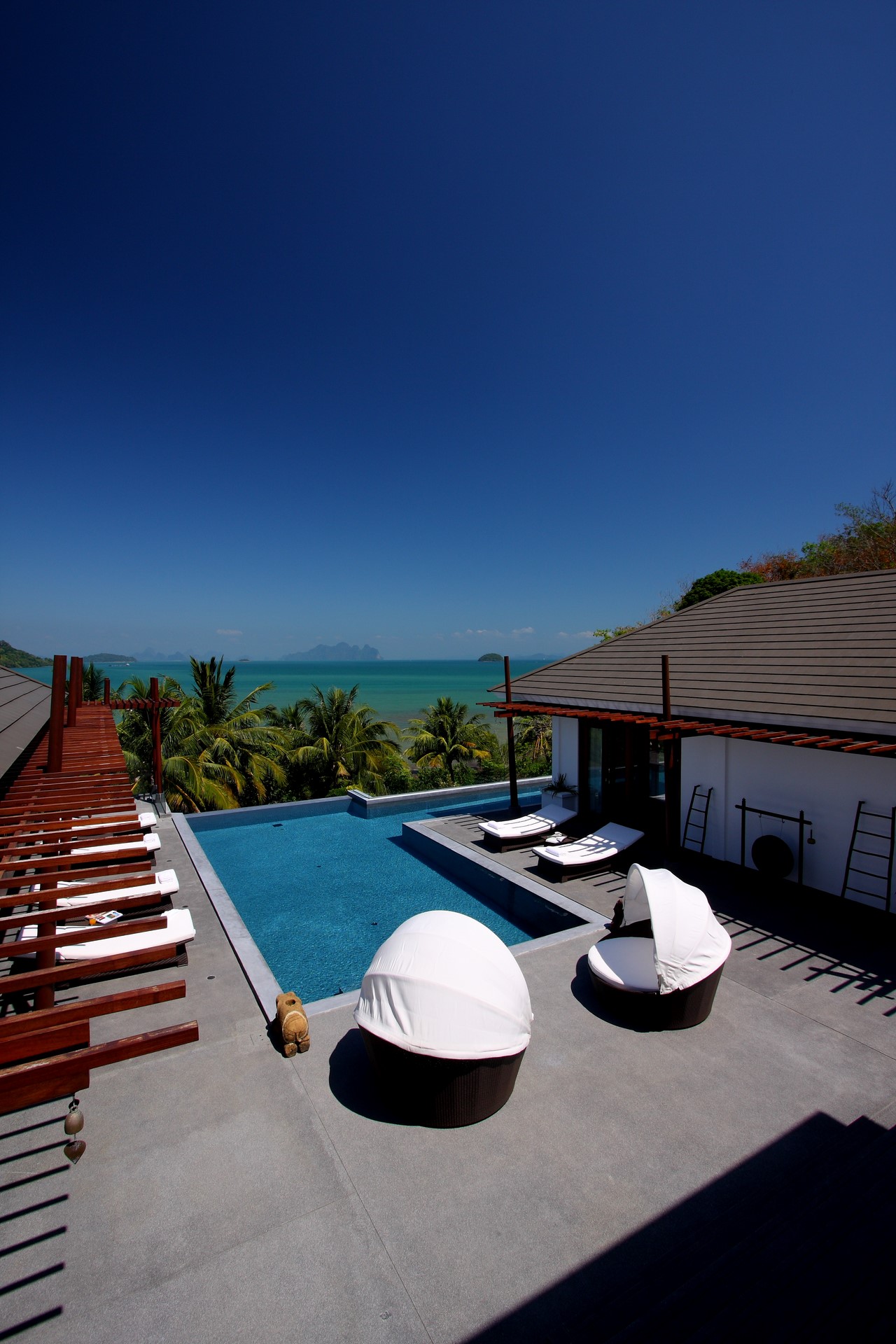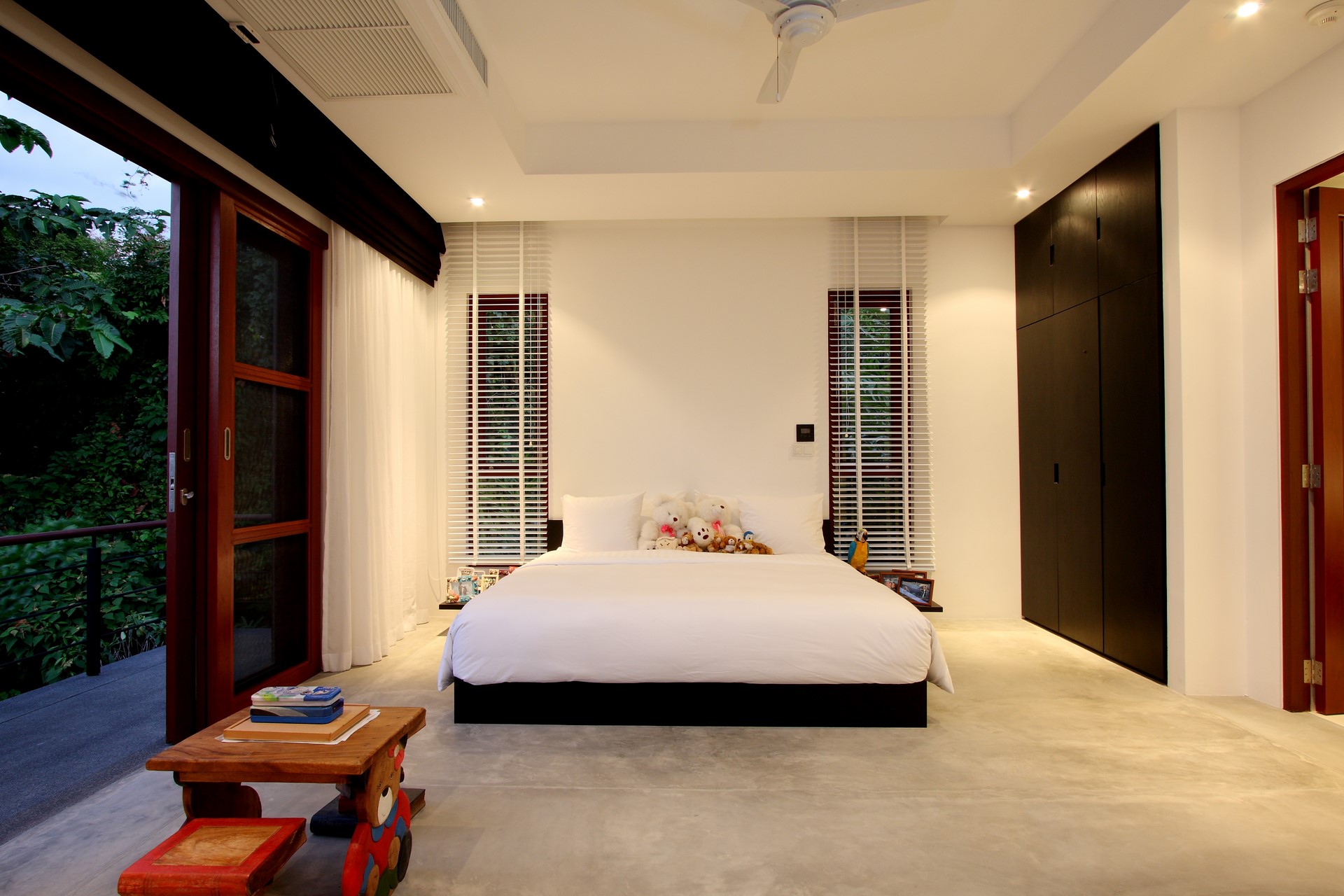 The villa’s style is contemporary/ zen and deceptively simple with calming tones and no superfluous adornments.