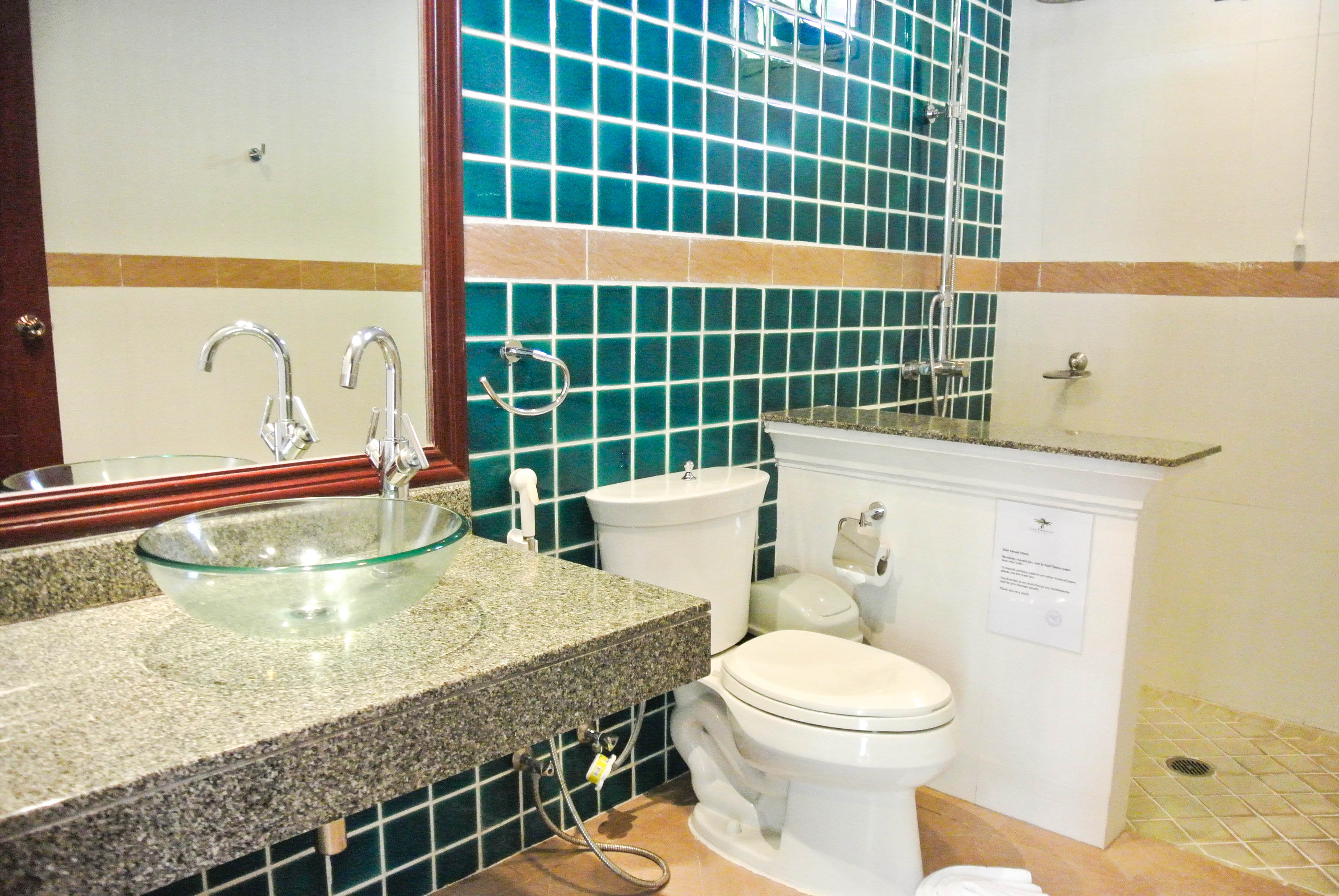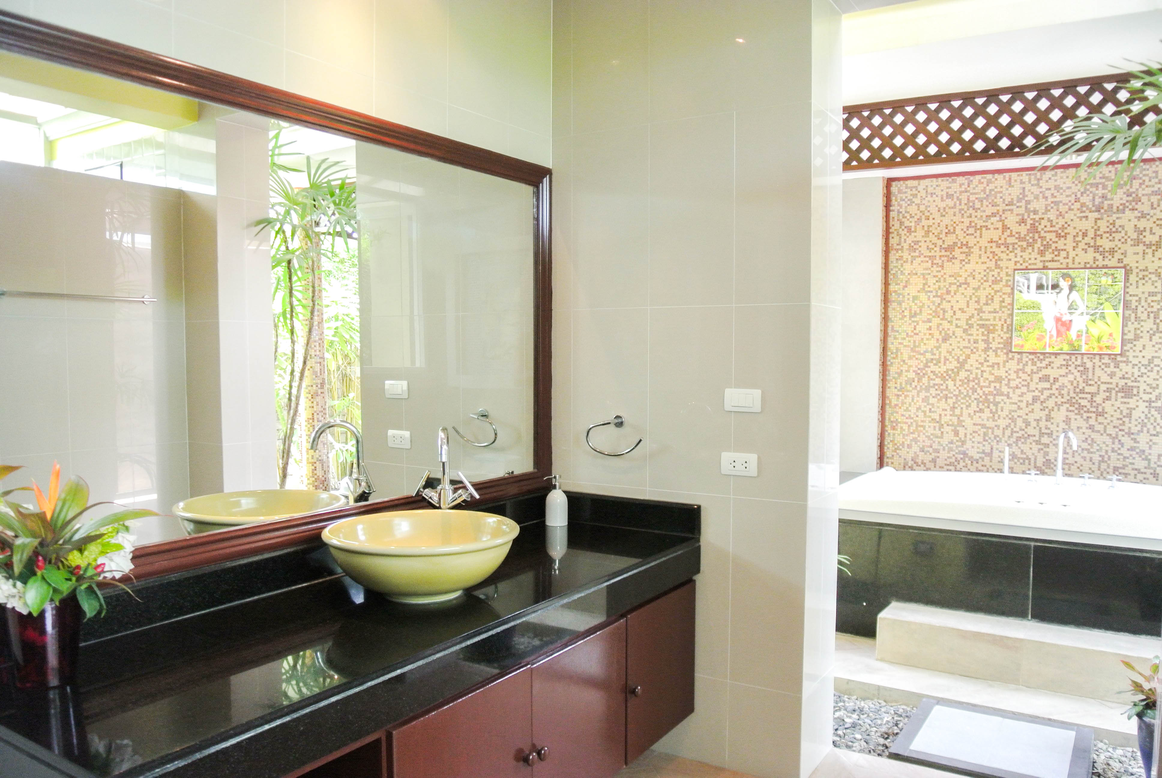 The en suite bathroom in the guest bedroom also has a toilet and washbasins and an open-air shower, which really is a unique feature.