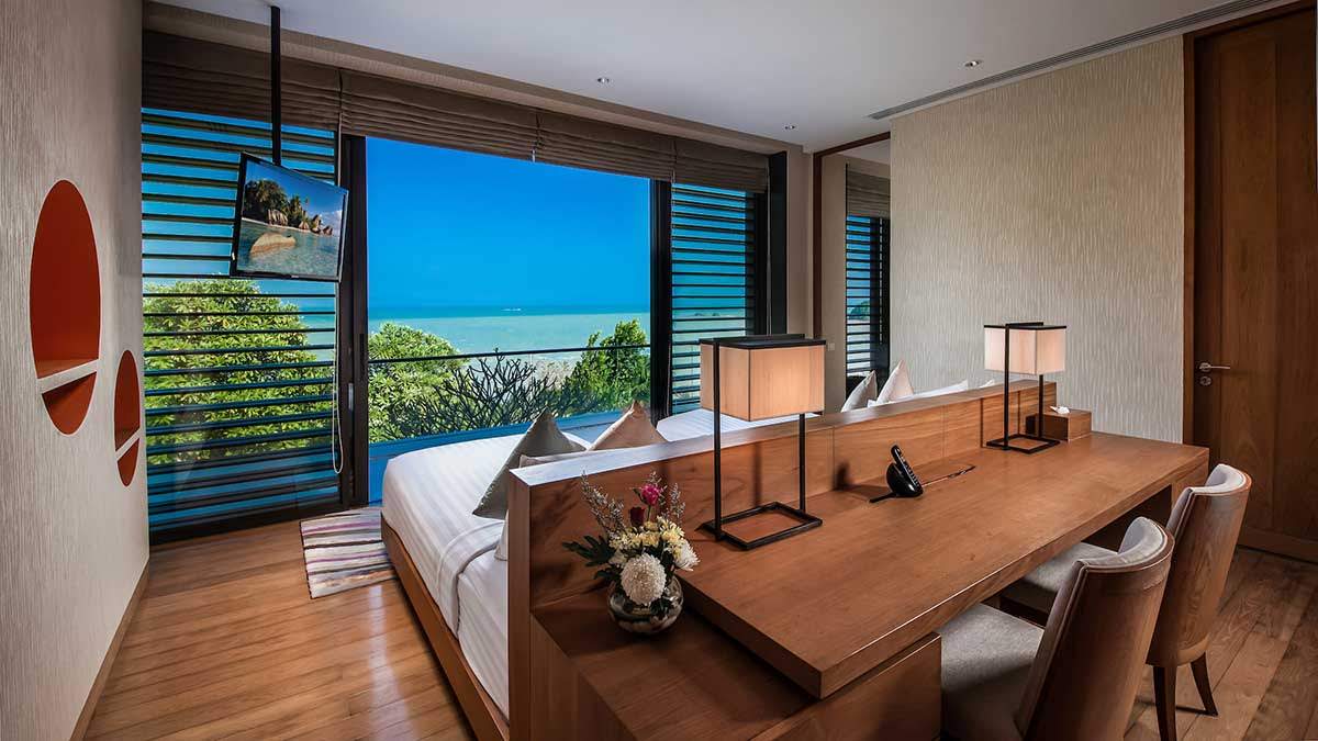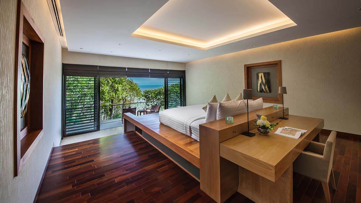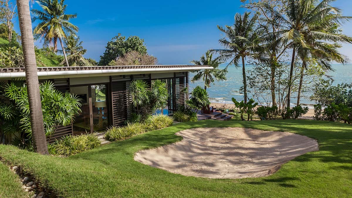 With views taking in glorious Phang Nga Bay, the spectacular sun rises to light up the grand atrium living space. The sun’s rays flood in through the wide-open, cathedral-like front that frames the villa infinity pool and sparkling sea view on the horizon magnificently. Renovated in 2017 and built in 2012, Villa is surrounded by three acres of lawns and botanical gardens and even a putting green for a spot of golf practice.