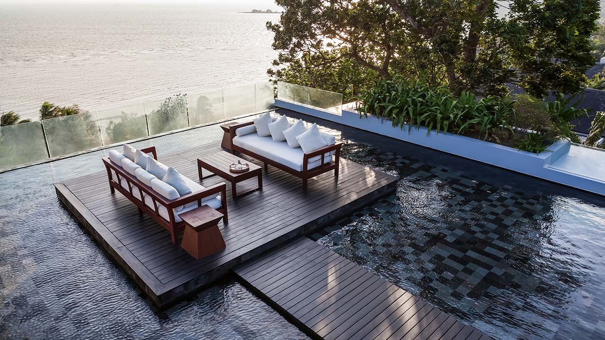 The saltwater pool and an al fresco, over-water sunrise and sunset deck with lounge seating reached by a wooden walkway, and the incredible water features within the villa conspire to create a beachfront green oasis in one of the island’s most serene locations. An outdoor dining sala, in-villa spa inducing total relaxation and a full gym inspire vacation experiences at Villa.
