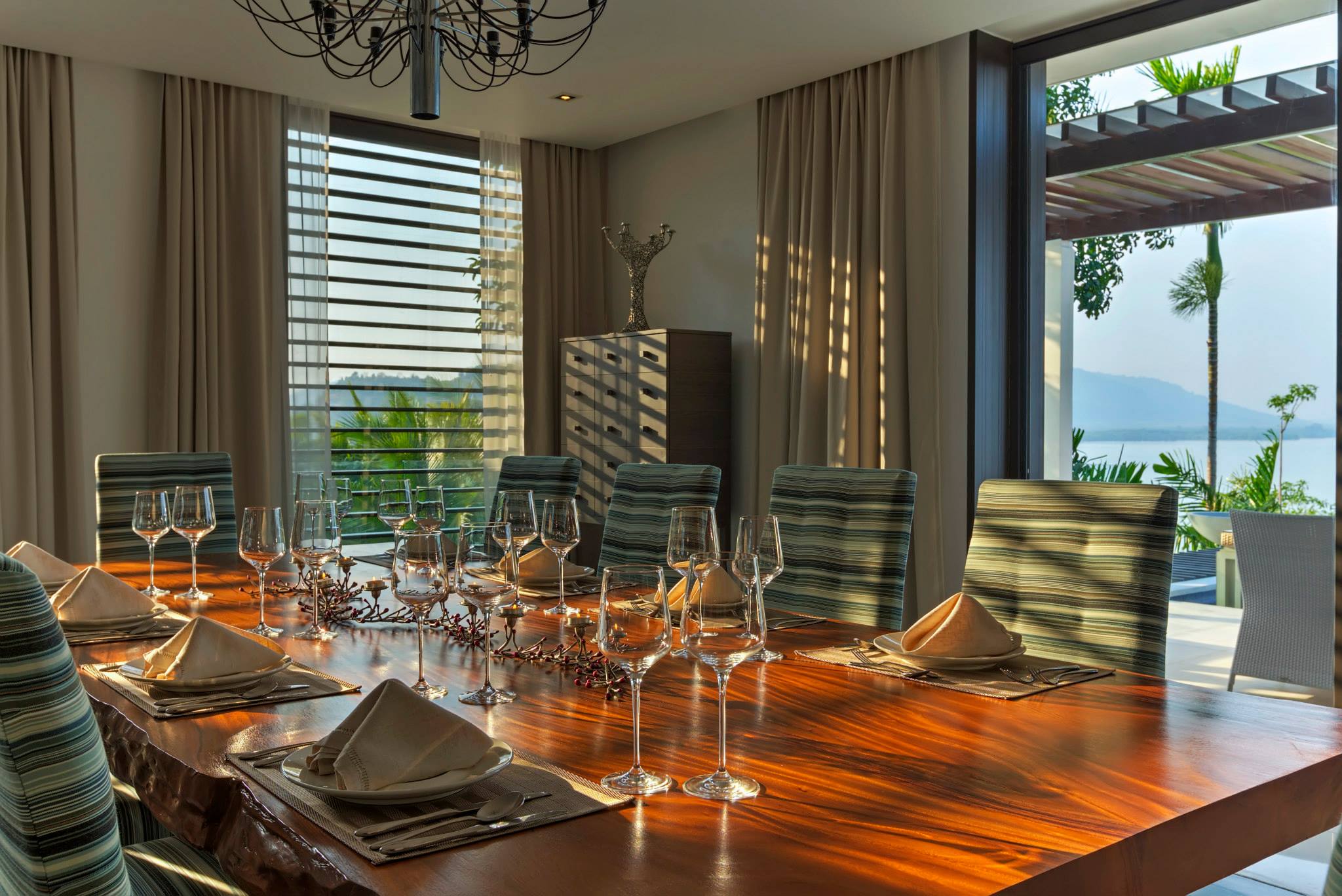 Villa features an outdoor pool, a private beach, a bar with indoor and outdoor lounging areas, gym, and a spa room. Almost all parts of the villa including the 6 bedroom suites, feature a stunning views of the turquoise ocean on its front and the breathtaking island formations on the Phang Nga Bay.
