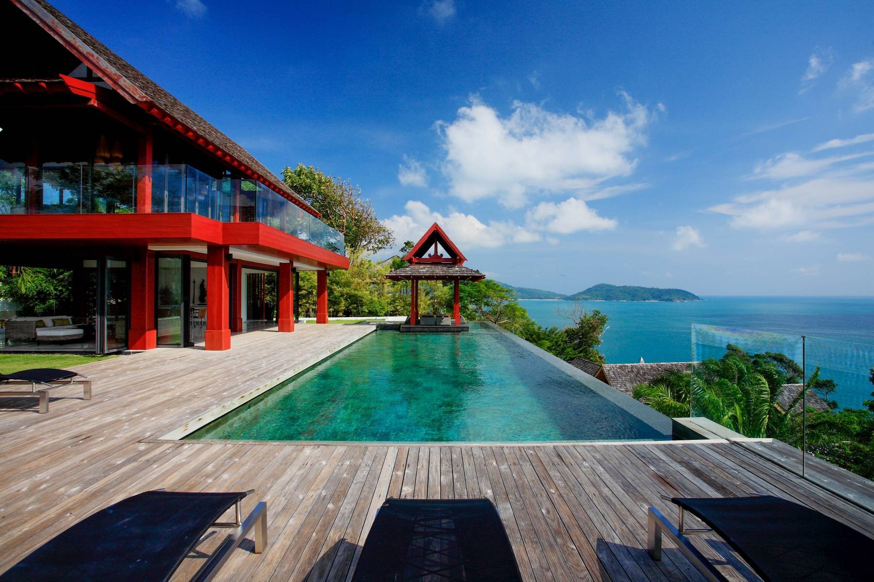 5 Bedroom Villa is surrounded by two white sandy beaches and has panoramic views over the Andaman Sea.