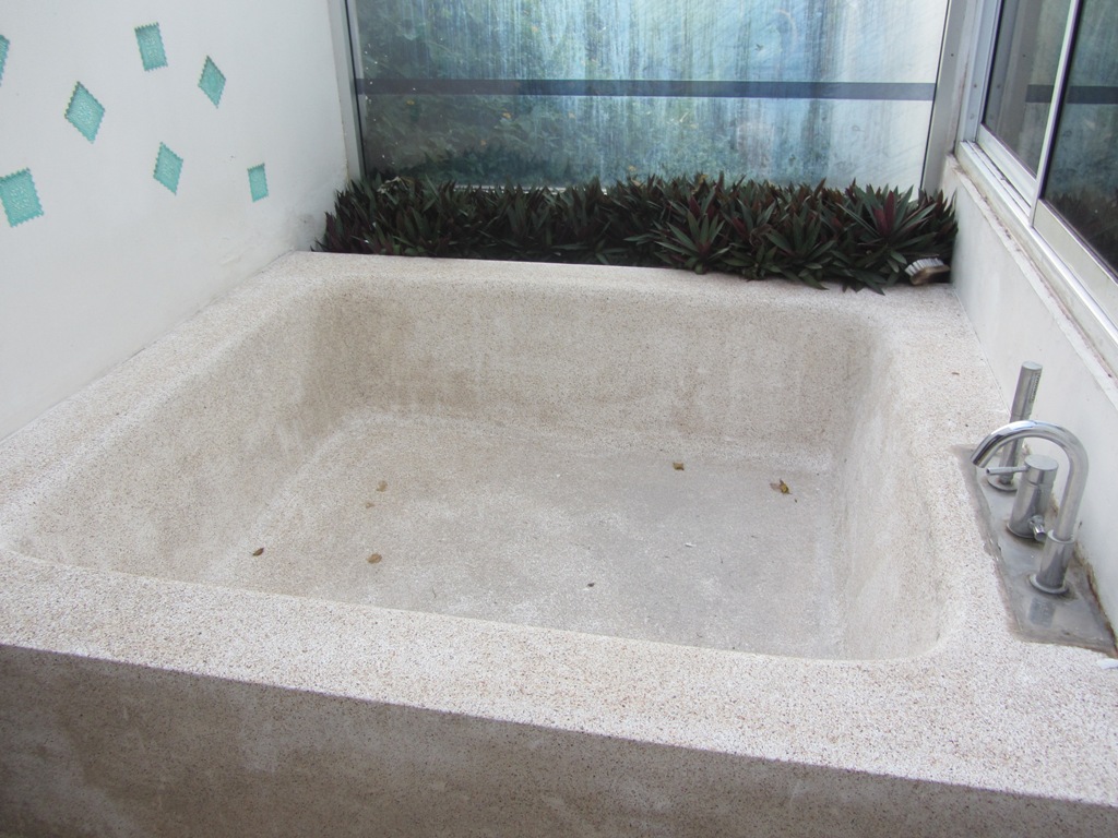 There is a private open air alcove next to the master bedroom that has a roman tub.