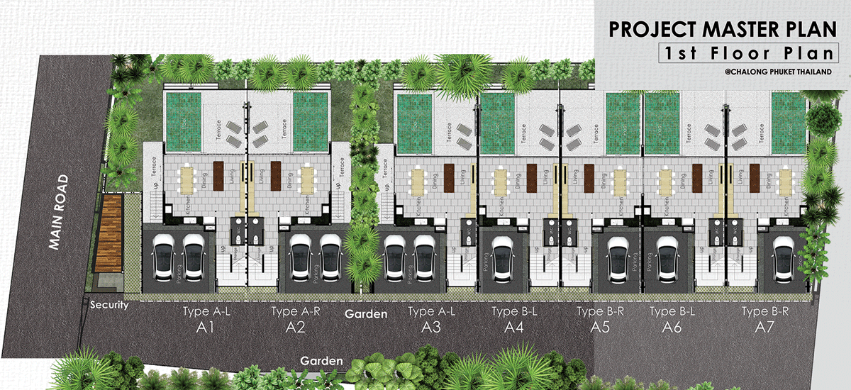 3 Bedroom villa’s design inspiration was taken from back to basic concept, inspired by grey,black, cement base and wood color.