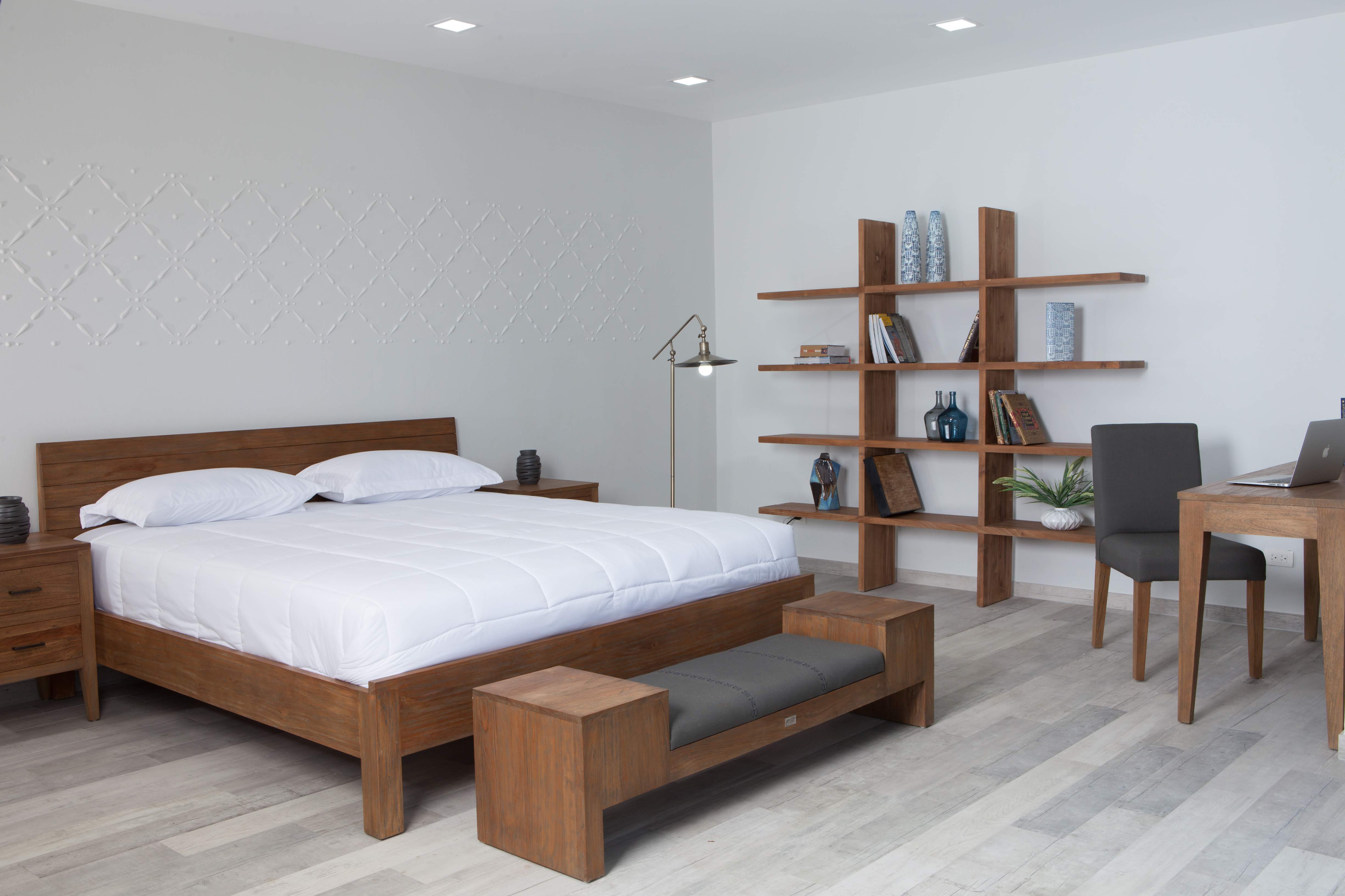 The villa interior features light wood and designer furniture made of natural materials.