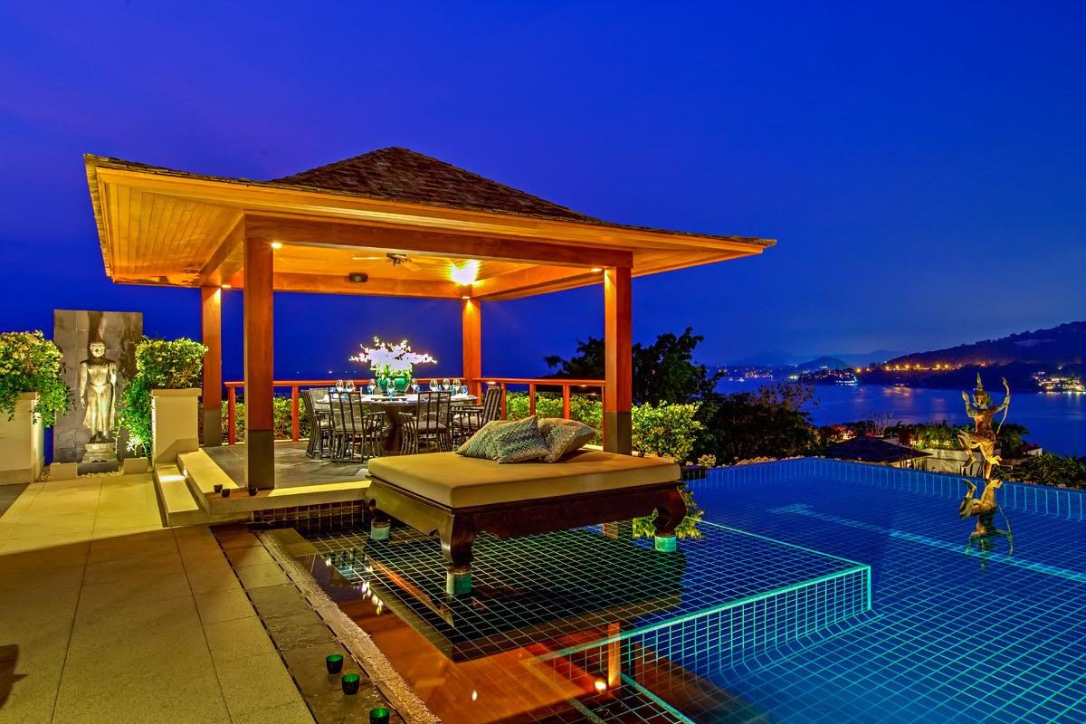 This one of the best and highest Villas in the Kamala area with stunning 180-degree sunset views over Kamala Bay from all aspects of the gardens and the villa.