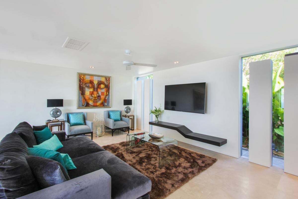 Thoughtfully designed, the villa reflects the owner’s love of the sea and tropical life, with works of art, décor and furnishings in sleek white, green and blue.