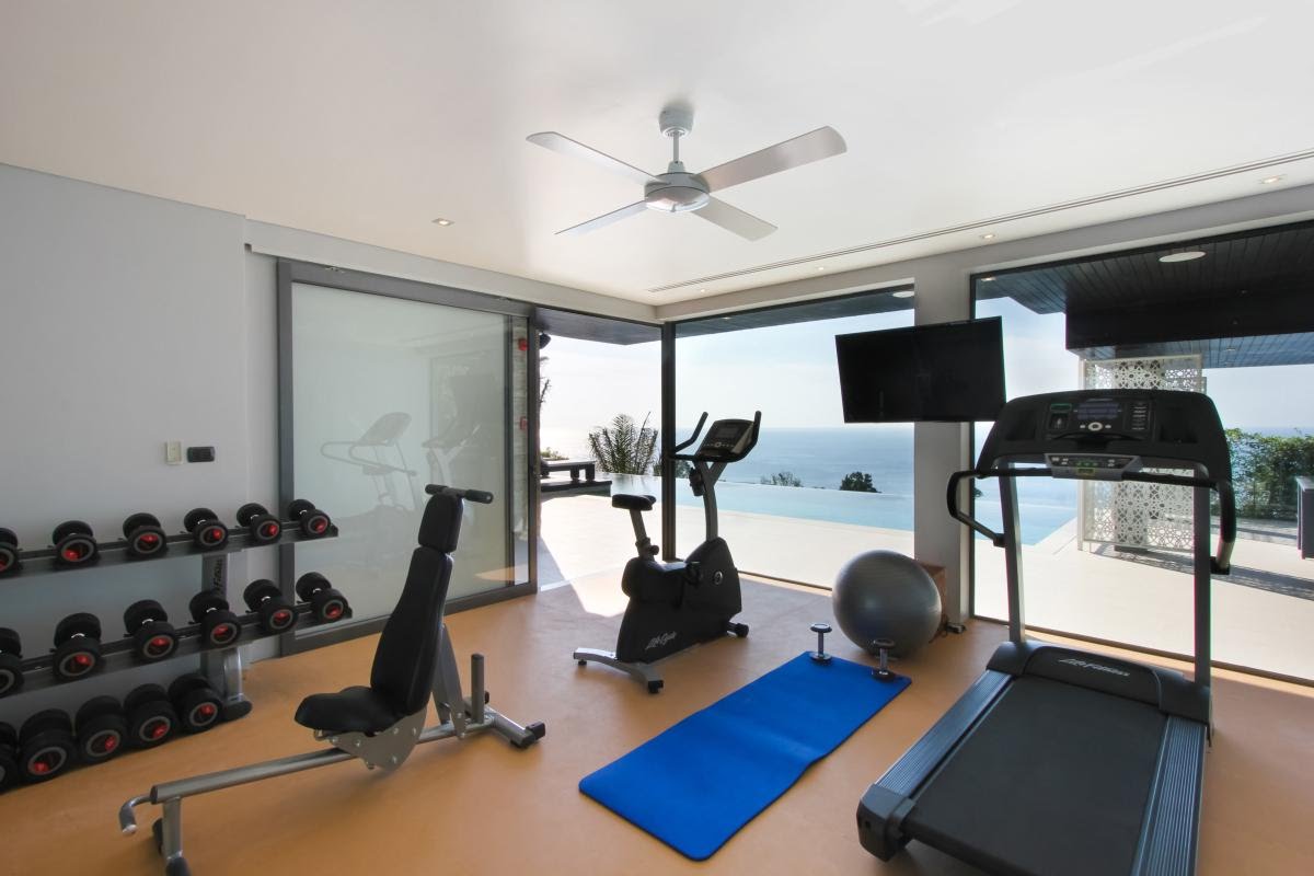 Downstairs is the villa’s gym, equipped with top-notch fitness and spa facilities.