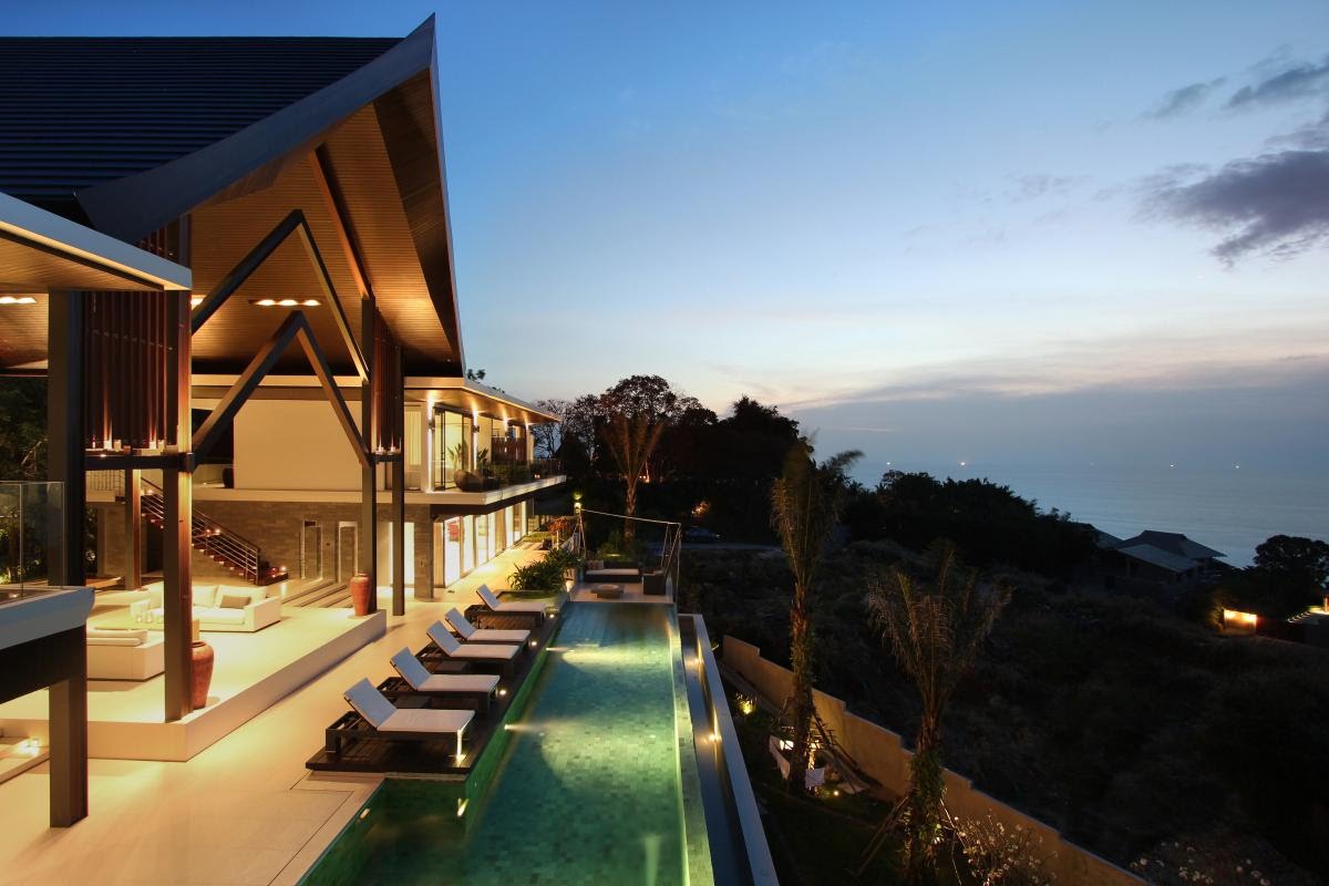 The villa is an outstanding holiday retreat with inspirational design and majestic ocean views from its dramatic hillside perch in an exclusive private estate near Kamala Beach.