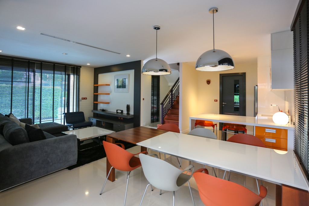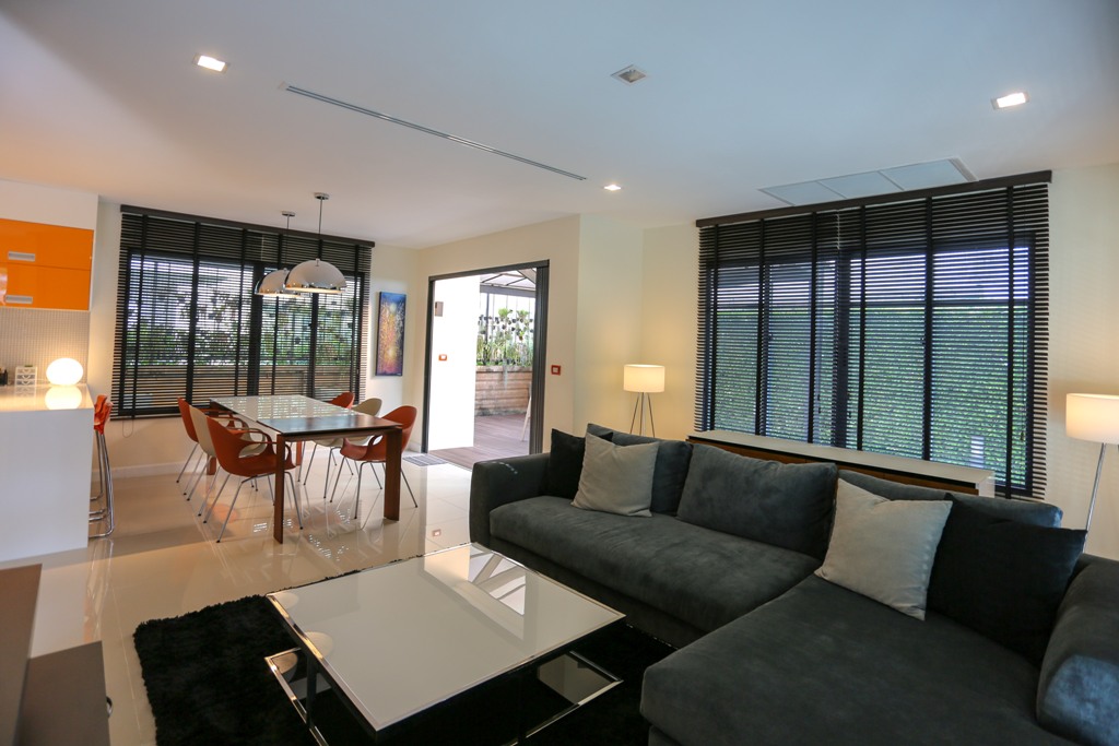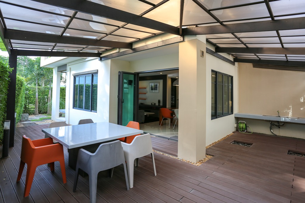 This 4 year-old 2-storery Sansiri-built villa has been substantially upgraded and benefits from the addition of: a maid’s room; a laundry room; large secure outdoor storage; and a large covered deck area – ideal for outdoor dining and BBQs.