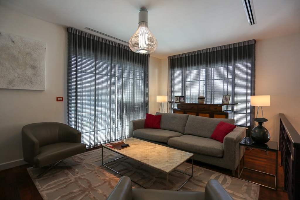 The house interior has been completed to a very high standard and includes: solid hardwood flooring throughout the upper floor; a solid hardwood staircase; a fully integrated air-con system; fitted Venetian blinds on all windows; and is finished with international spec electrical sockets throughout.