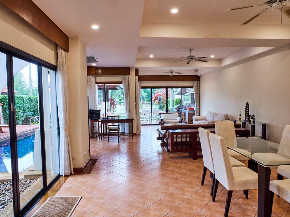 The spacious and bright house is two stories. The real decoration of the villa is a well-kept tropical garden surrounding the house, which offers a beautiful view of the golf courses and the lake.