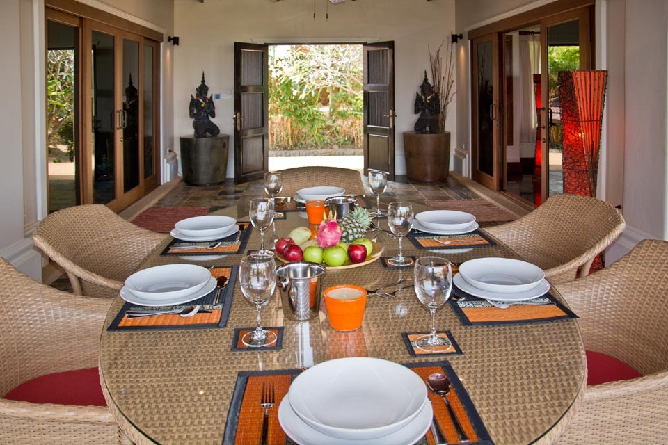 Walk through to the dining area where you can dine in style with views out over the pool.