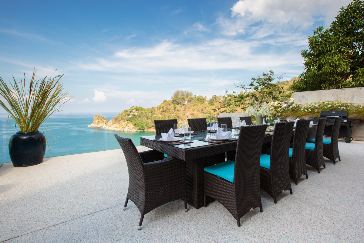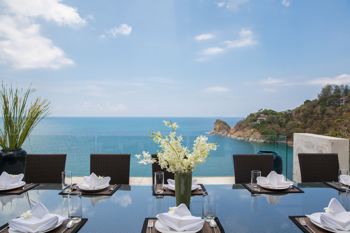 Capacious interiors are matched by waterfront terraces large enough for events, set around a stunning infinity pool overlooking the Andaman Sea.