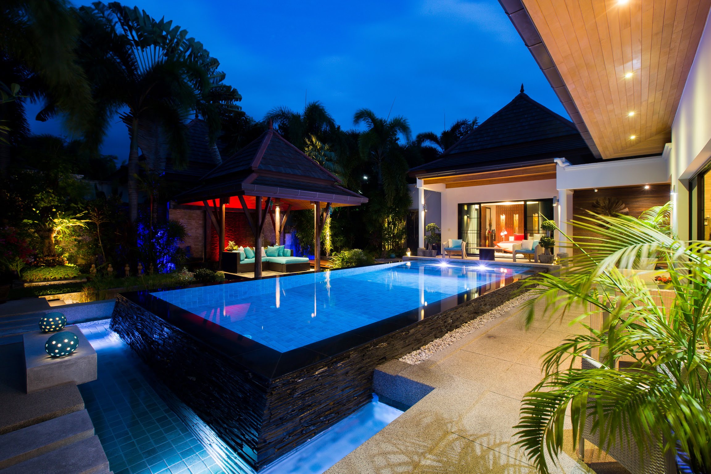 A luxury contemporary Asian Pool & Garden Villa set in a private gated estate of only 8 villas on the beautiful west coast of Phuket, just a stroll to the soothing panoramas of the glistening Andaman sea and white sands of Bang Tao/Surin Beaches.